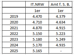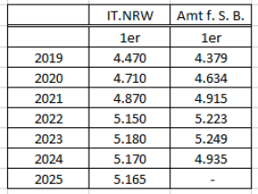 Zum Vergleich: Die IT.NRW Prognose vs. Prognose der Duisburger SEP
